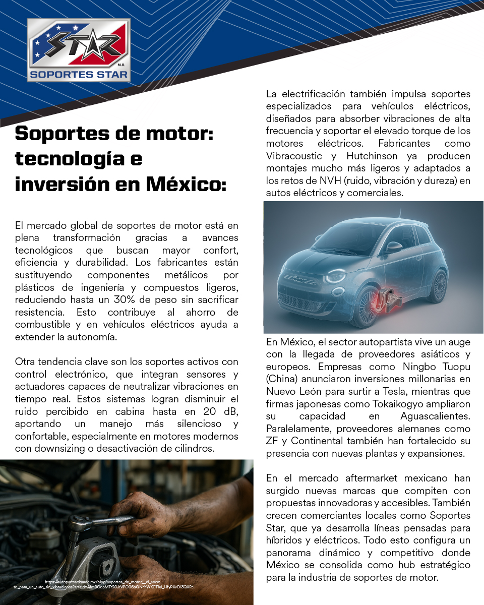 El mercado global de Soportes de Motor está en plena transformación gracias a avances tecnológicos que buscan mayor confort.